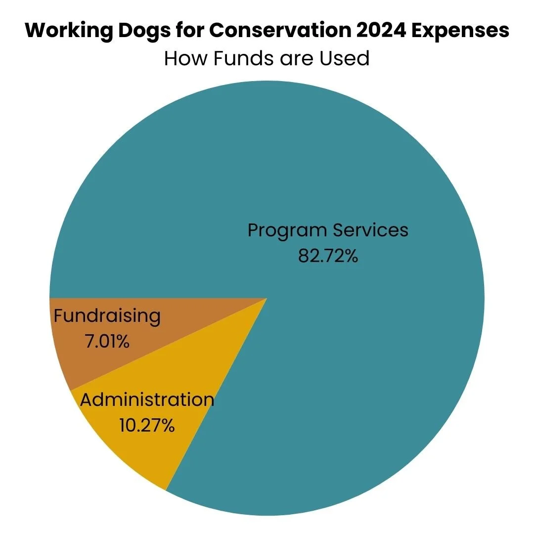 At WD4C, over 82% of expenses are directly used for conservation canine programming.