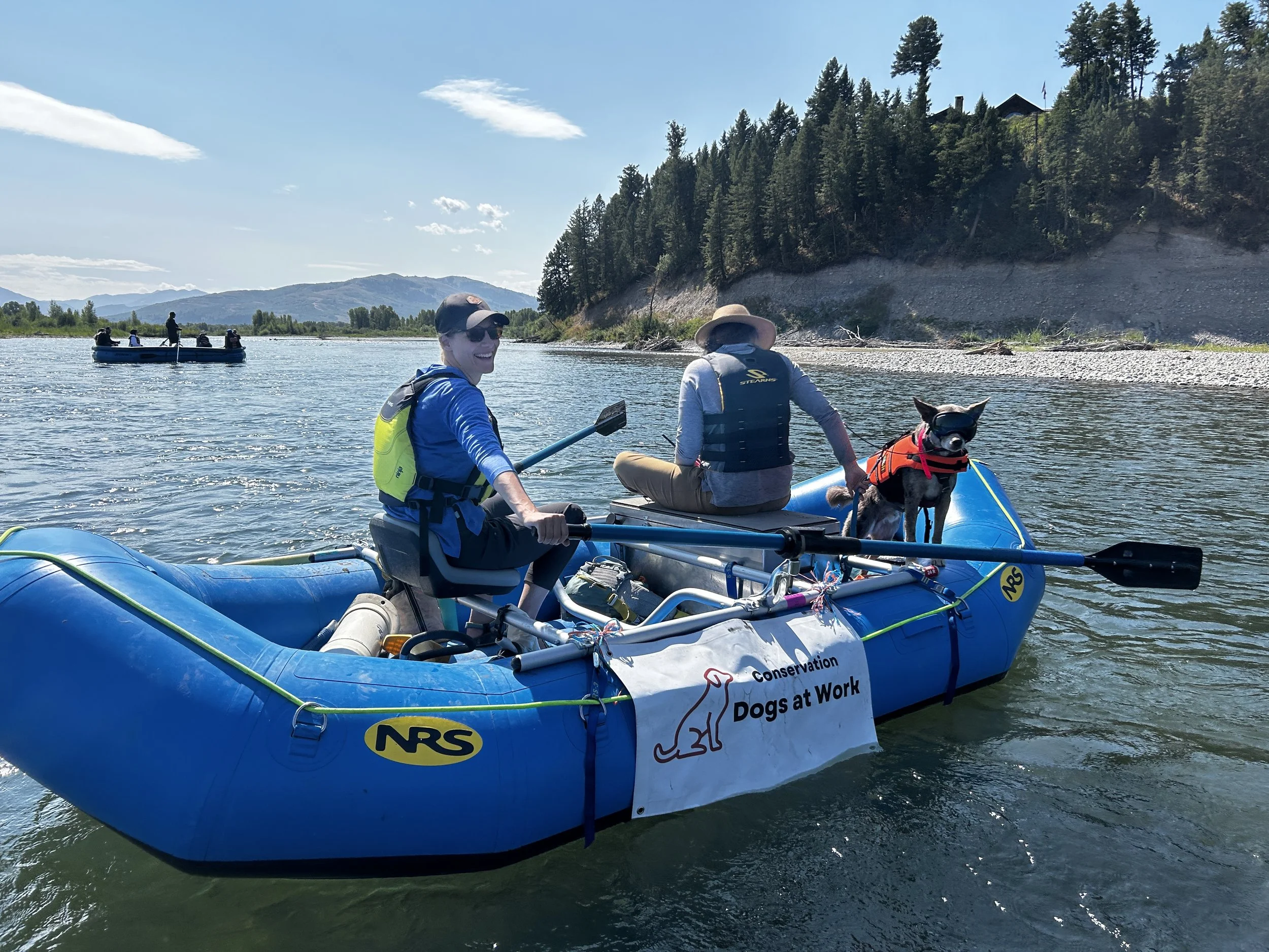 Our teams search the Snake River in Jackson Hole, Wyoming, sniffing for these plants on the many islands along this river stretch. To reach the search areas, our partners, Teton County Weed & Pest (TCWP) and volunteers row the teams downriver, ensuring each section is carefully selected, mapped, searched, and marked. Each time the teams find a plant, its location is mapped and marked, for proper and complete removal, all towards the goal of preventing further spread ultimate eradication in the region.